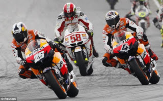 Simoncelli's fellow Honda rider Dani Pedrosa, who had fallen out with Simoncelli earlier in the season, said: 'I've been with his father and all we could do was to hug, nothing else matters.